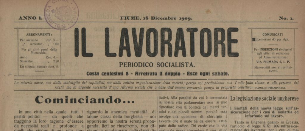 U intenzivnom periodu riječke povijesti, između 1867 i 1918, a koji se još naziva Corpus Separatum, u vrijeme neprestanih previranja talijanskih, mađarskih i hrvatskih političkih strana, izlaze novine koje podižu svijest običnog radnika. Sam naziv Il lavoratore („Radnik”) evocira upravo ono što zastupaju – interese radničke klase.